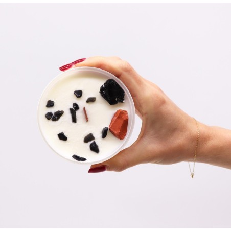 Vela de tamaño grande decorada con 7 piedras de colores inspiradas en los chakras. Ideal para crear un ambiente de calma en casa, meditación o sesiones de yoga....